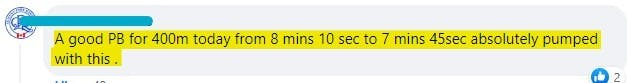 Smashed 5mins off her 1.6km time after only 4 weeks in the program