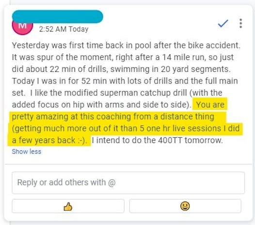 I loved the simplicity of the program and the drills and video clips were easy to follow and understand for a non swimmer.