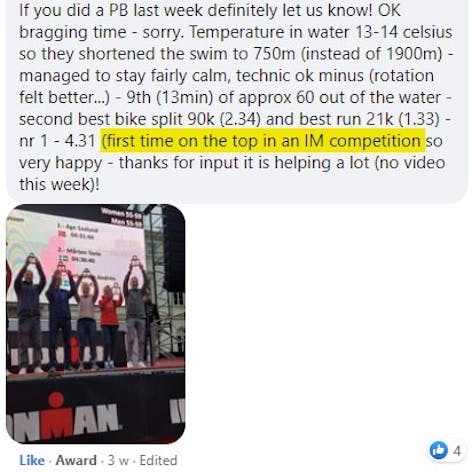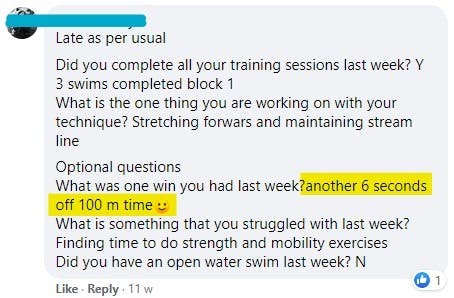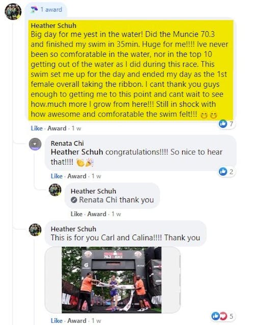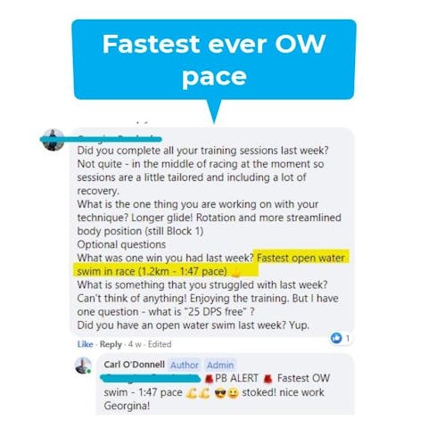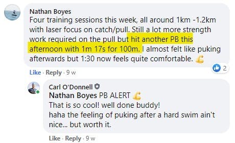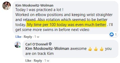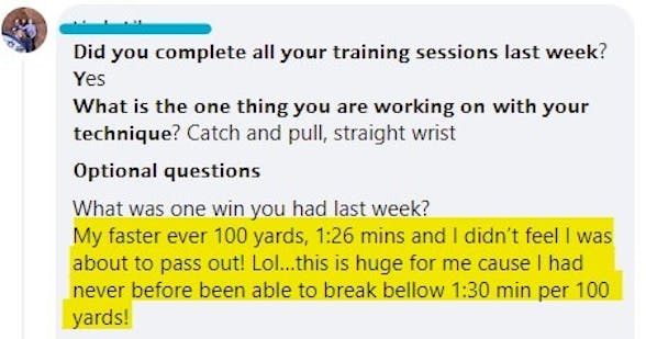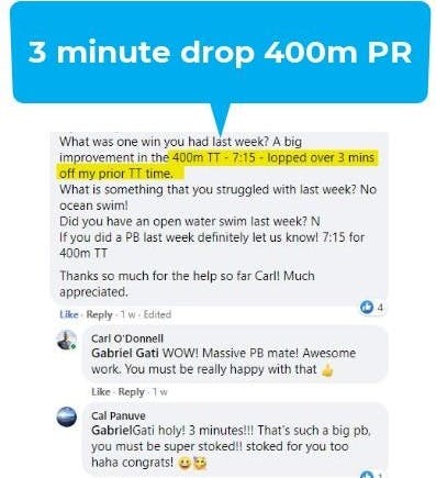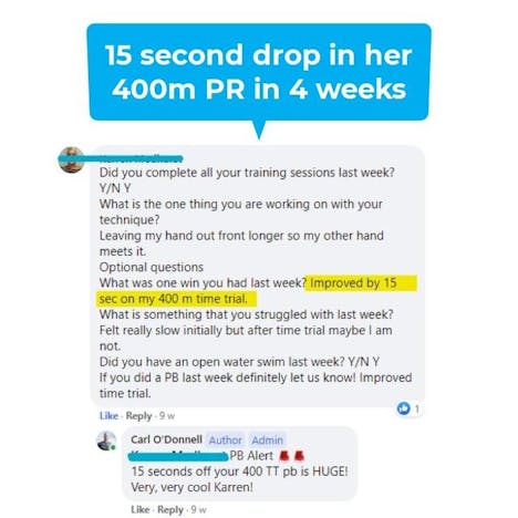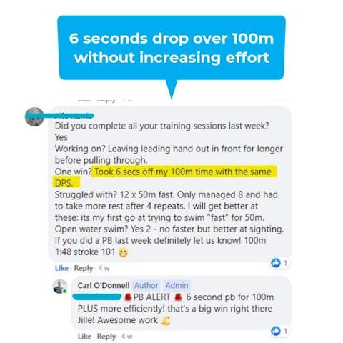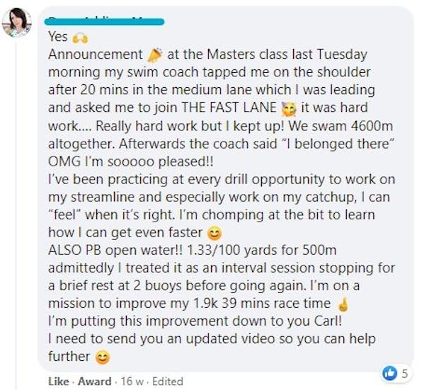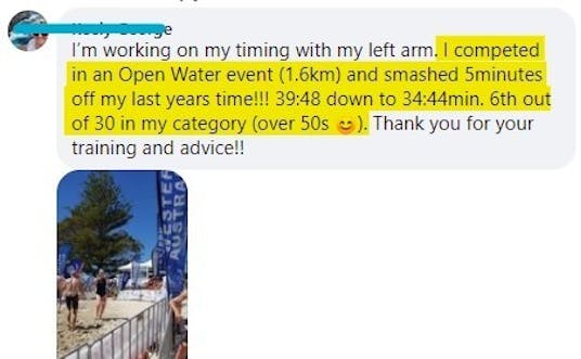I then signed up for a 12 week program leading up to Dubai 70.3 Ironman . It gave me so much confidence and I incorporated many of the drills in my swimming every week and found I went from 2.10/ 100m to 1.47/100m at my fastest consistently in the pool.Â