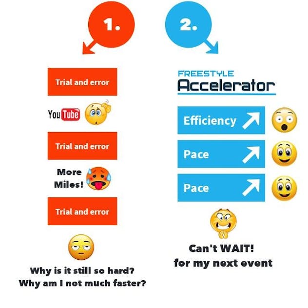 If you want to be able to swim easier, swim faster, and swim further without getting exhausted the Freestyle Accelerator is the fastest, easiest, and most effective way for you to get there.Â